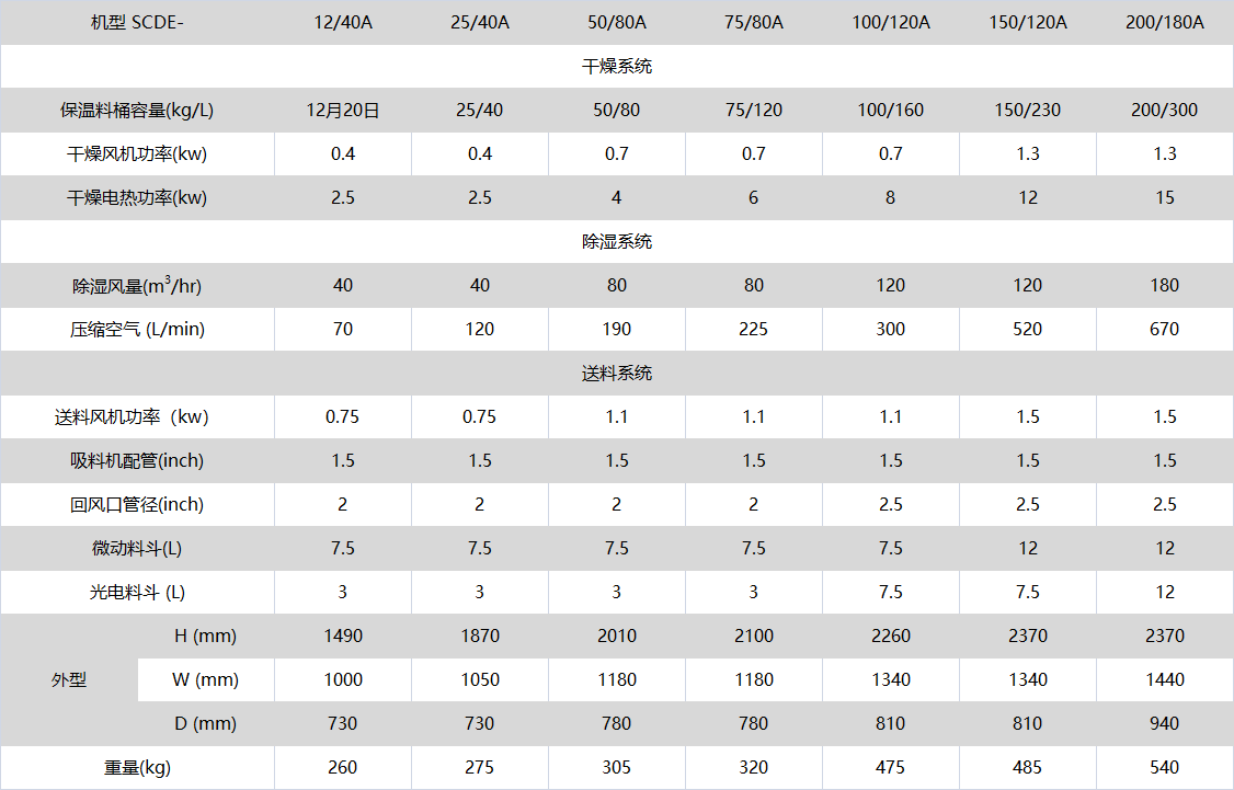 ·双层保温干燥料桶采用下吹式风管设计,防止热能流失,提高干燥效率